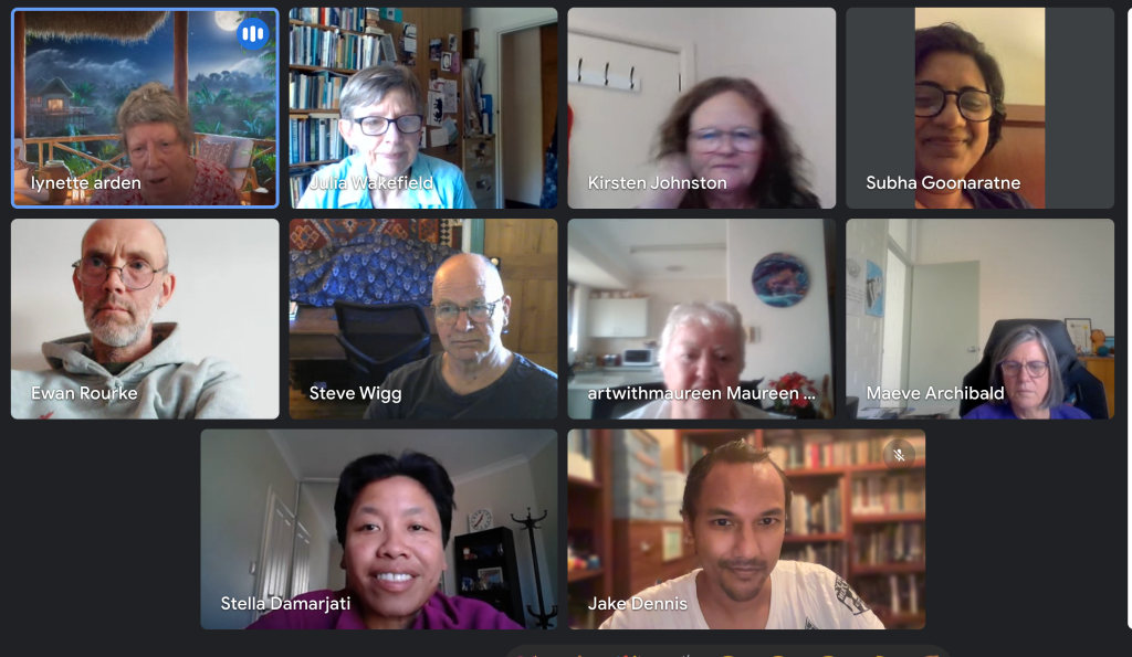 We had a Google Meet meeting for the first time. Steve Wigg, Julia Wakefield, Stella Damarjati, Maeve Archibald, Subha Goonaratne, Maureen Sexton and Lynette Arden were joined by three new members: Kirsten Johnson, Jake Dennis and Ewan Rourke. Jake lives in WA as does Maureen, and Subha is based in Sydney, so Google Meet is a very handy way of bringing our group together. We all agreed it works just as well as Zoom.