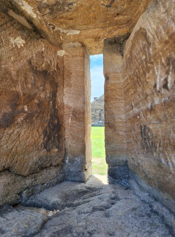 Equipped with maps from the Visitor Centre, we dispersed for an hour’s ginko. Reconvening at a shaded picnic table, everyone shared their impressions. We tried to imagine Wareamah before colonisation, before its sandstone was quarried and tunnelled through. Many of the draft poems were inspired by the remnants of the island’s convict and ship-building past – the now silent and decaying buildings, machinery and tunnels.