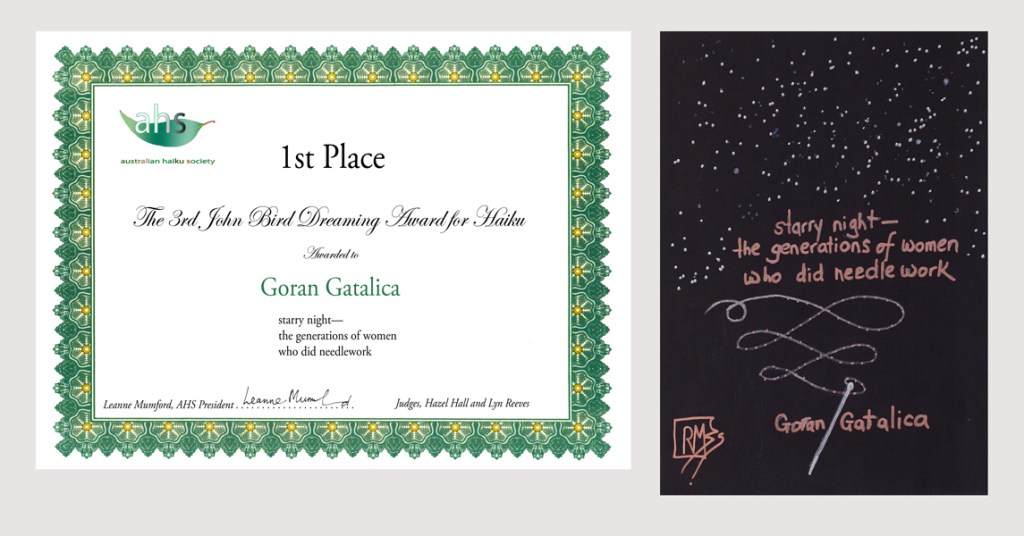 2 thoughts on “Results of the 3rd John Bird Dreaming Award for Haiku”