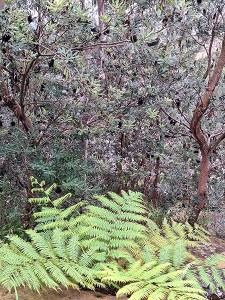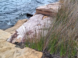 We found inspiration among the weathering sandstone blocks undergoing colonisation by shellfish, lichens and moss, in the grasses, trees, and shrubs, some of which were flowering, from a couple of darters and the ubiquitous noisy miners, and the general activity of the harbour.