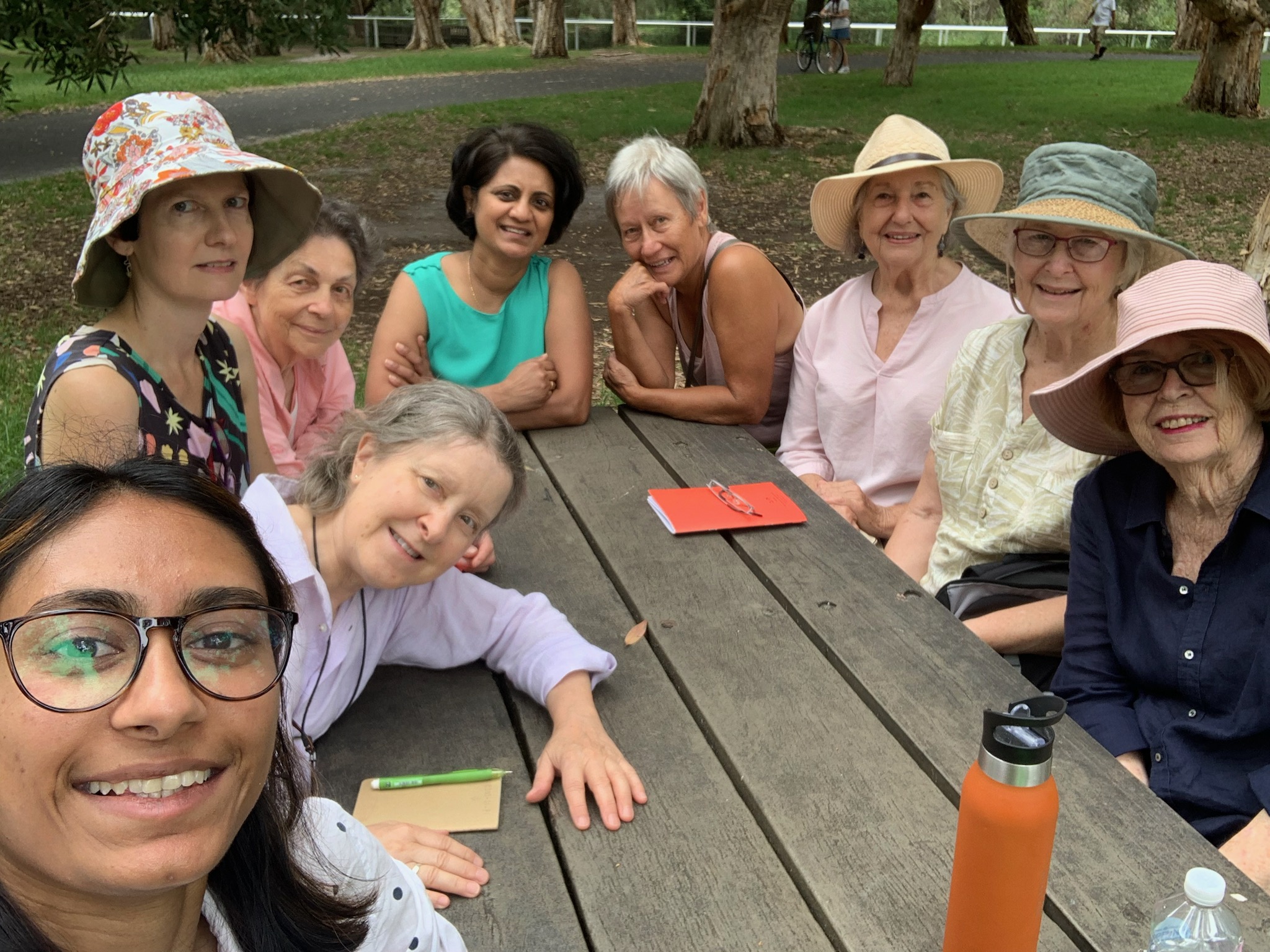 Previous Image Next Image IMG_20240204_163706_GadigalGinko4 L to R: Devni, Leanne, Jane, Zina, Subha, Wanda, Susan, Carol, Margaret. Photo by Devni. Group photo on Gadigal Ginko number 4 in Centennial Park.