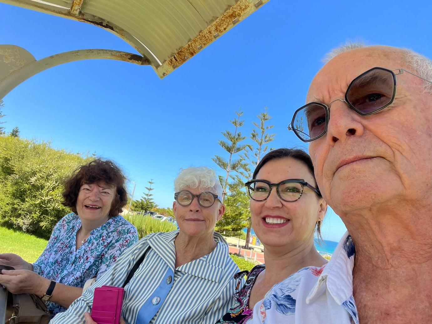 Previous Image Next Image PaperbarkGinko_Jan2023 LtoR: Rose van Son, Coral Carter, Tash Adams, Barry Sanbrook Paperbark Haiku ginko group photo January 2023: LtoR: Rose van Son, Coral Carter, Tash Adams, Barry Sanbrook